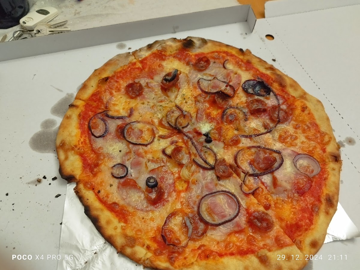 One of the standout highlights of the menu is the Horuca Limonada Egreš Rebarbora, a zesty and invigorating drink that blends the tangy flavors of gooseberries and rhubarb. It's the perfect way to start your meal or to enjoy while catching up with friends over drinks. For pizza lovers, the Pizza- Rozne Druhy Najradšej Mame Dakotu V Ohni is a must-try. This unique pizza combines a perfect blend of flavors, with a crispy base and an irresistible mix of toppings that make it a crowd favorite.