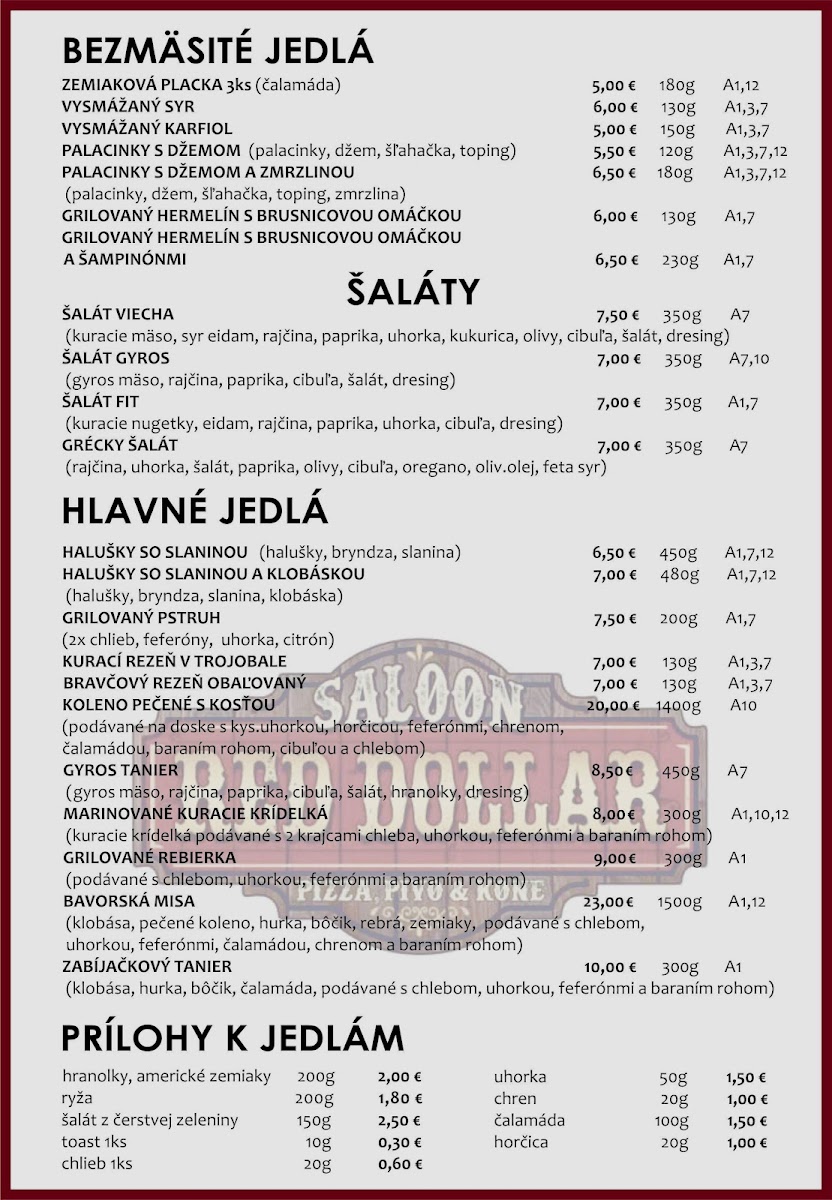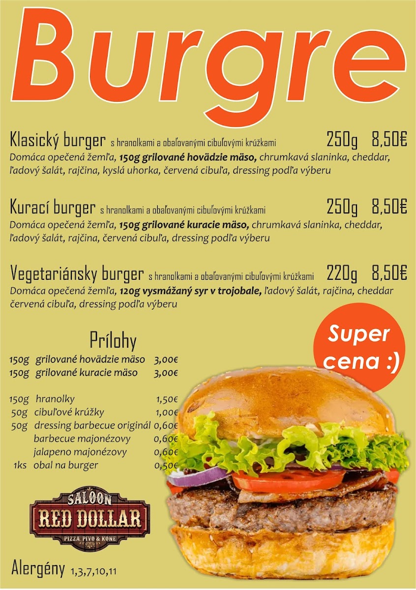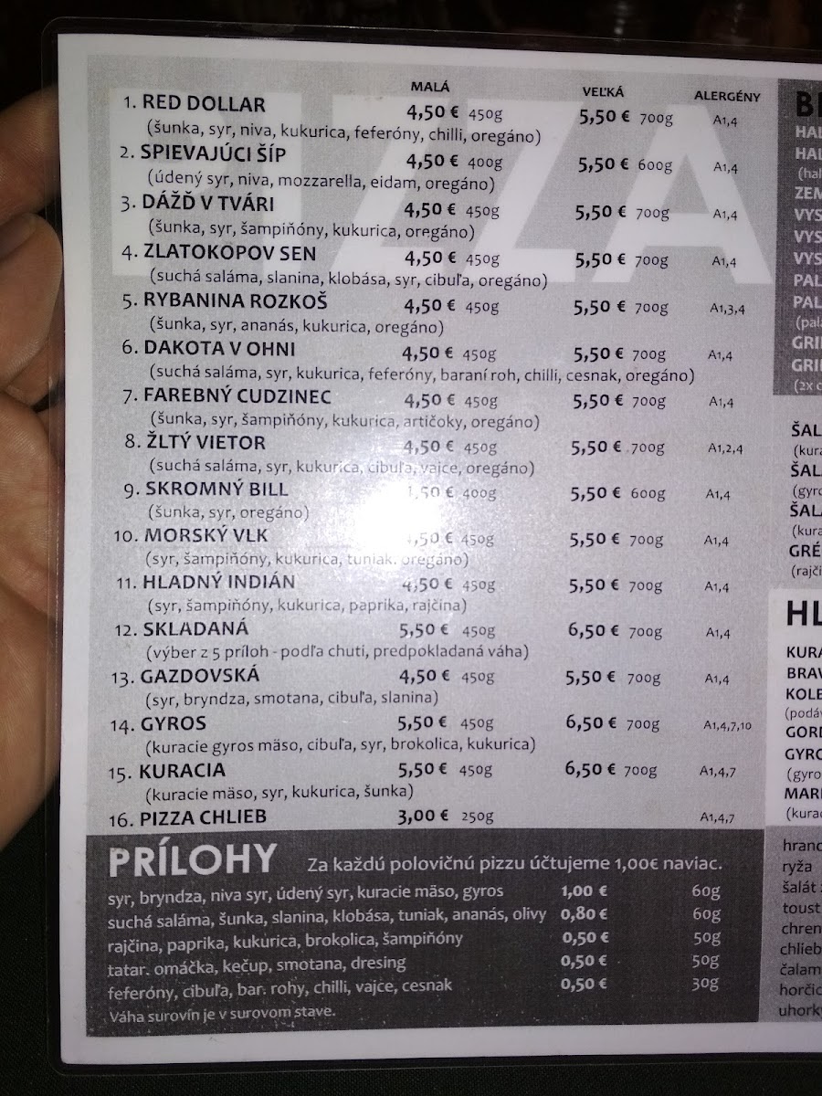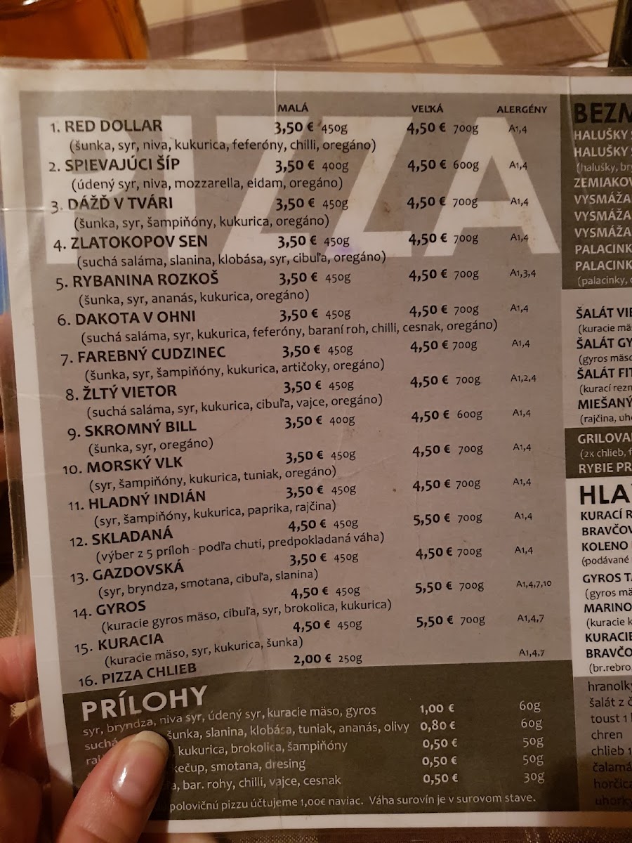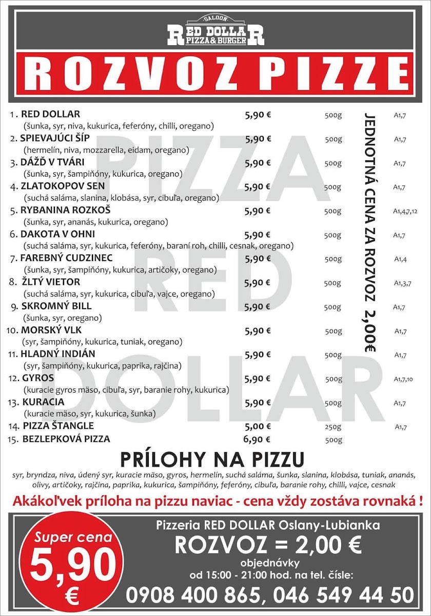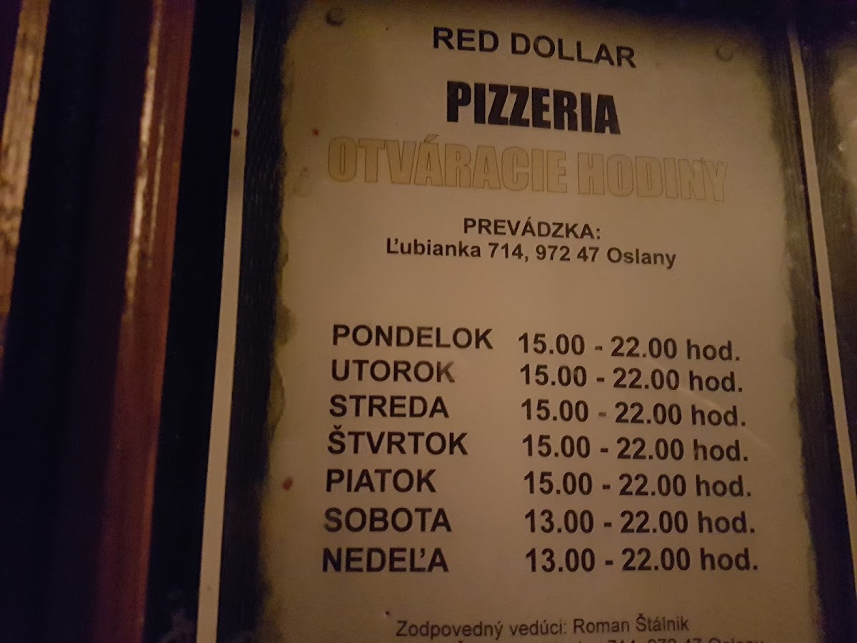 The menu at Red Dollar Pizzeria offers a delightful blend of bold flavors and unique combinations, making it a standout spot for both locals and visitors. A highlight of the drink menu is the refreshing Horuca Limonada Egreš Rebarbora, a tangy and sweet lemonade infused with gooseberry and rhubarb that perfectly complements the savory dishes. For pizza lovers, the variety of options is sure to satisfy every craving, with the Pizza- Rozne Druhy Najradšej Mame Dakotu V Ohni standing out as a particularly popular choice. This pizza combines a smoky flavor profile with a medley of ingredients that creates a perfect balance of heat and richness. The restaurant’s offerings embrace creativity and quality, ensuring each dish is memorable. Whether you're in the mood for a creative drink or a hearty pizza, Red Dollar Pizzeria delivers a satisfying and flavorful experience that leaves a lasting impression.